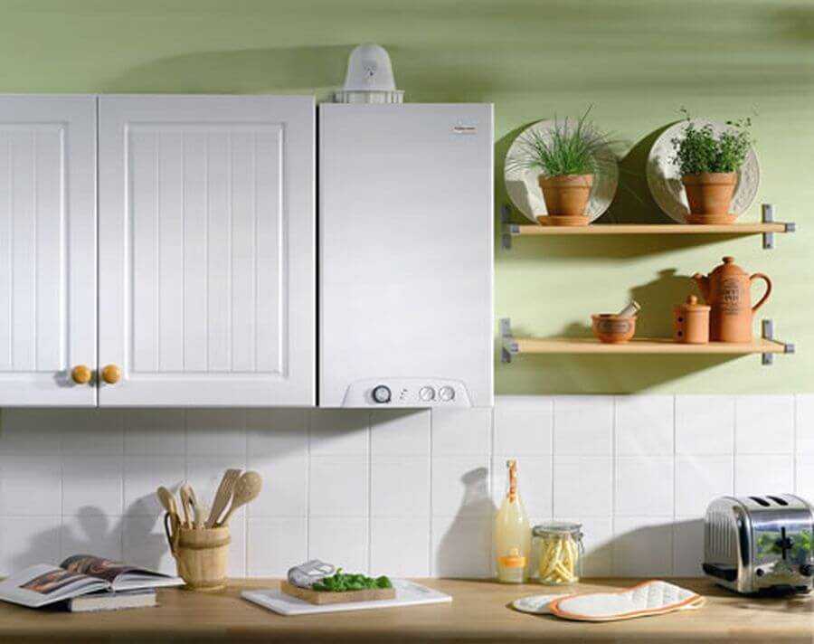 Газовая колонка прекрасно впишется в интерьер, если её внешний вид будет гармонировать с дизайном подвесных шкафчиков