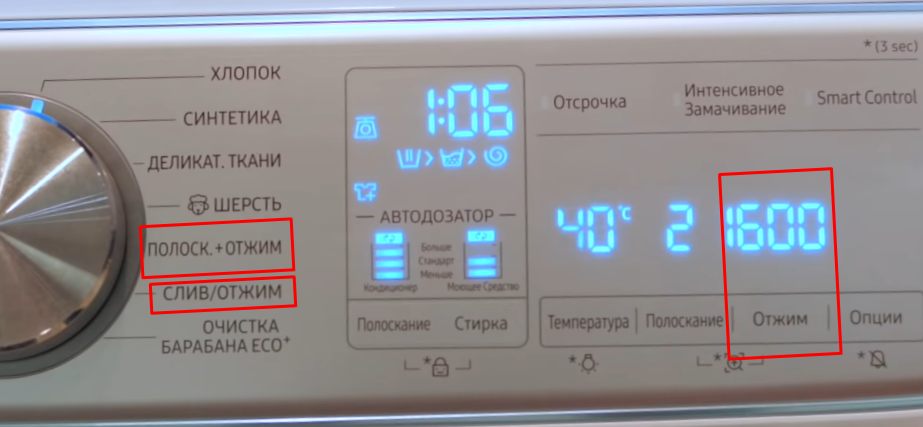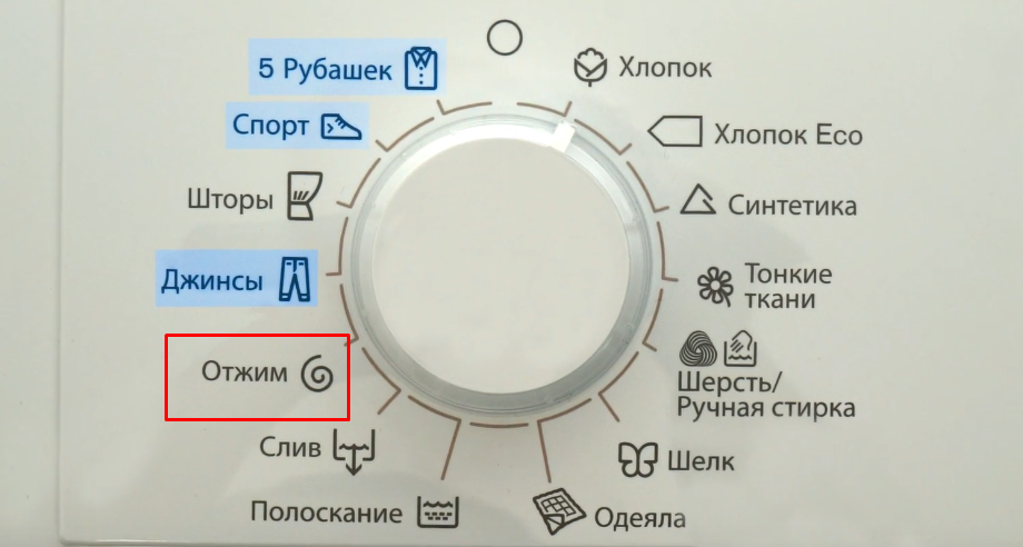Во многих стиралках режим часто выносится как отдельная опция. Иногда он комбинируется с полосканием или со сливом. Это нужно для того, чтобы пользователь мог просто отжать вещи, к примеру после обычной ручной стирки.