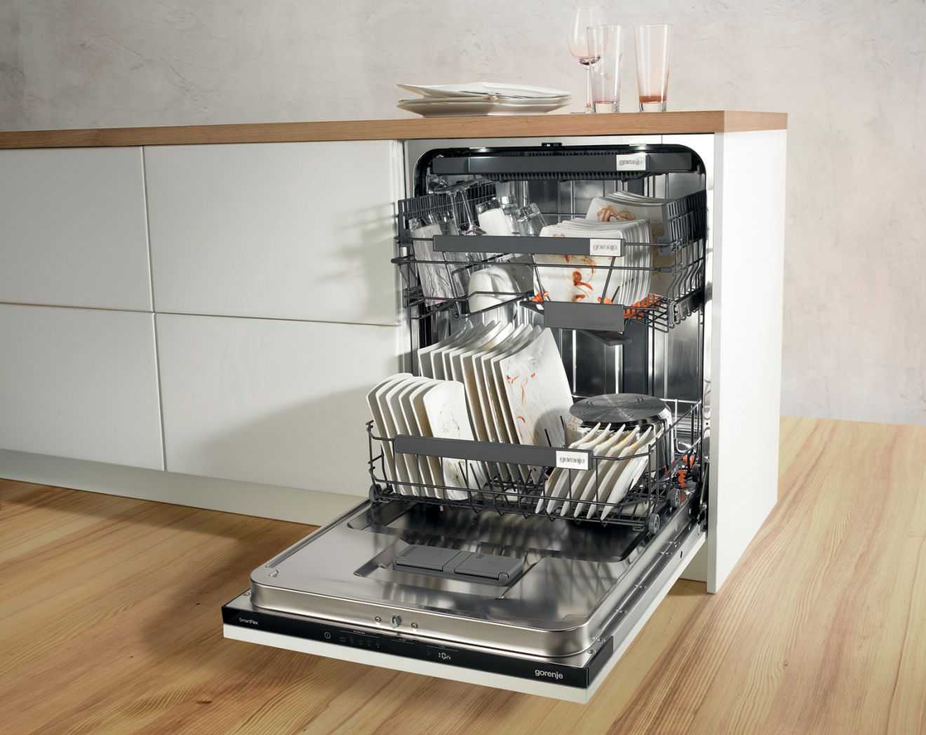 - Сложность установки. В небольшом помещении выделить 60 см пространства под полноразмерную посудомойку бывает трудно.
