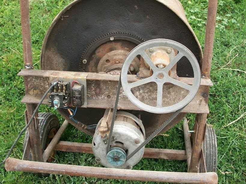 Мощность мотора старой машины, выбранного для подключения, определяется объемами предстоящих работ. Для приготовления бетона в небольших количествах достаточно использовать однофазный двигатель.