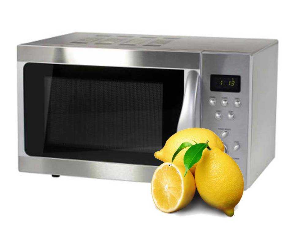 При чистке лимоном или лимонной кислотой работает тот же принцип «бани». Только вместо простой воды используется раствор, приготовленный из 200-250 мл воды и сока 2-х лимонов или 1 чайной ложки лимонной кислоты. Цедру лимонов можно также положить в жидкость, тогда бонусом получится приятный цитрусовый аромат. Вместо лимона можно использовать лайм или даже апельсин.