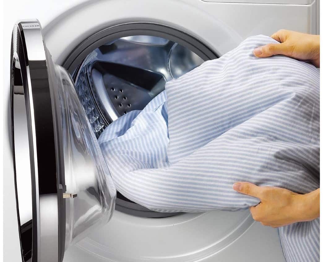 - Вес. Производители стиральных машинок часто дают строгие ограничения относительно загрузки барабана. Если устройство не позволяет стирать больше 3 кг вещей, то одеяла, подушки, куртки и прочие габаритные изделия придется стирать вручную. В технике, способной за 1 раз выстирать 5 кг белья, уже можно стирать крупные изделия, если они не превышают указанный вес в мокром виде.