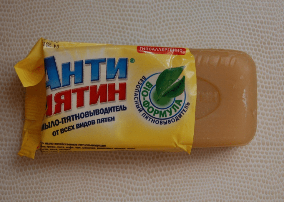 - Мыло «Антипятин» позволяет избавиться от свежих пятен косметических средств, чая, кофе и жира.