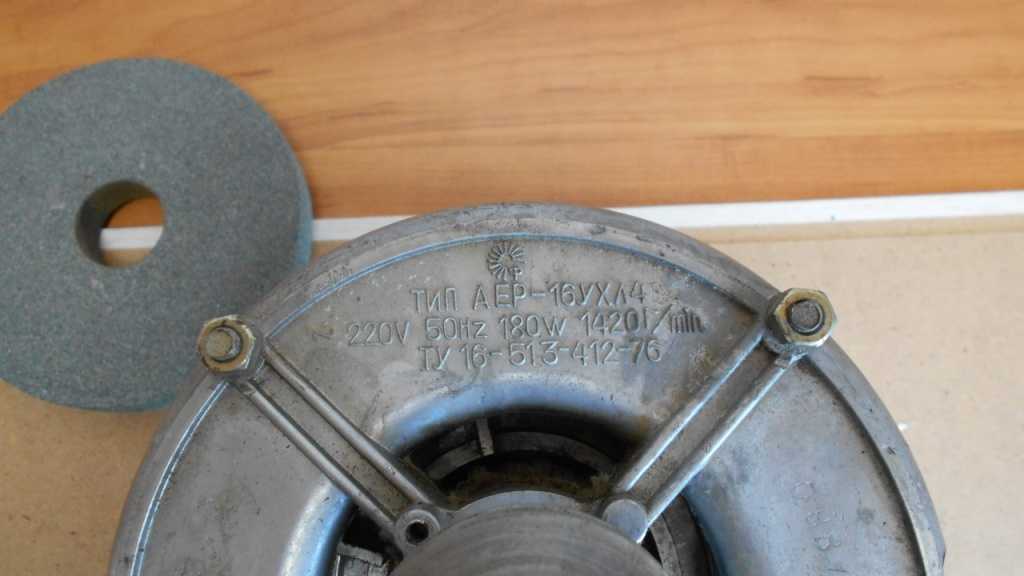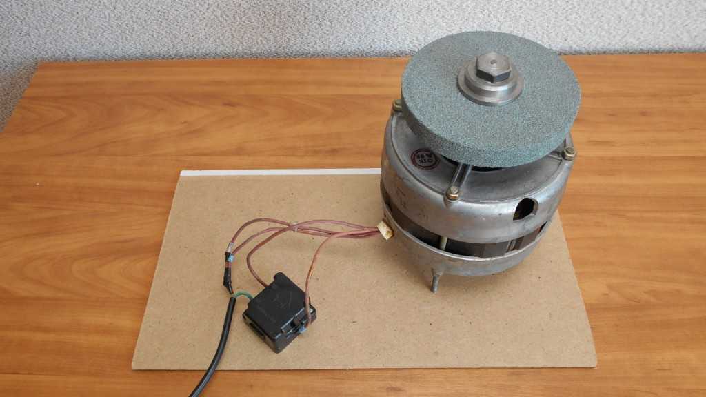 Для сборки домашнего точильного станка потребуется главным образом рабочий мотор от стиральной машины. Можно взять от советской стиральной машины электромотор мощностью 200 Вт, например, от Риги-17 СМР-1,5. Хотя одни говорят, что оптимальная мощность 400 Вт, а другие – что при мощности более чем 300 Вт, точильный круг может разлететься на куски. Для редкого использования точильного станка достаточно мотора в 1000 оборотов в минуту.