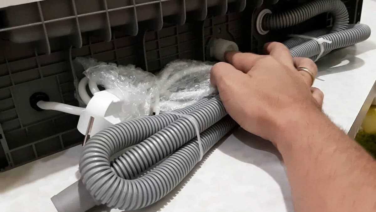 - вмонтированные в машину шланги необходимо протянуть через отверстия к месту водоснабжения и канализации;