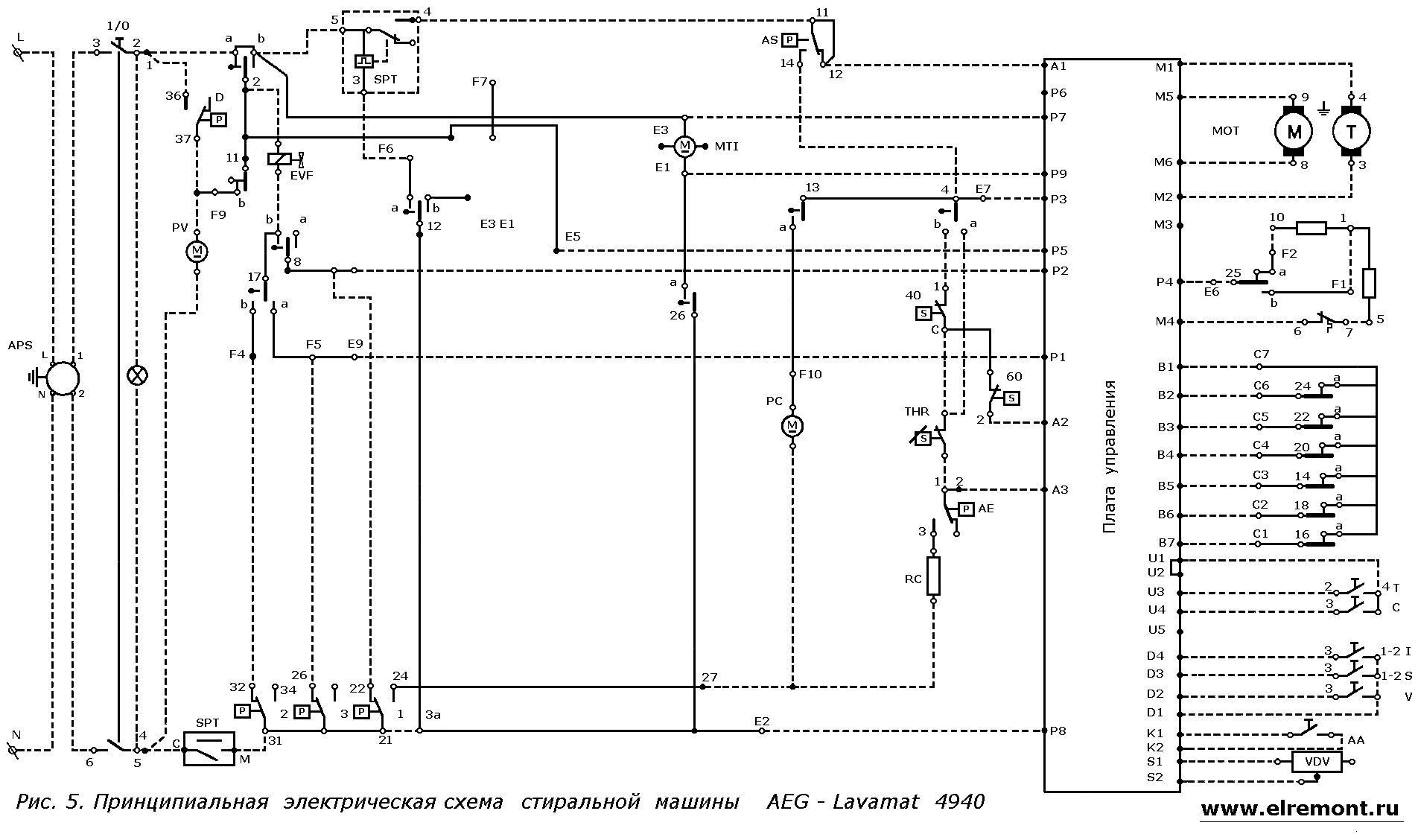 Принцип работы стиральной машины МСТ О 25Э, аналоговая схема