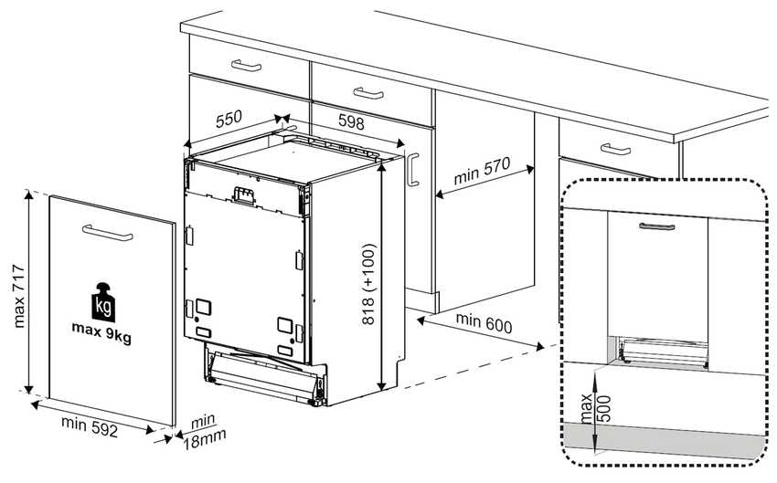 Как встроить посудомойку в кухню: интеграция в шкаф