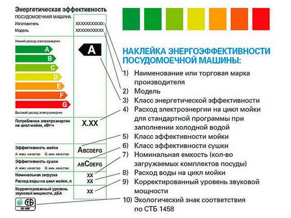 Чем меньше тратится воды, тем меньше потребуется и электричества. В маркировке класс энергопотребления указывается буквами от A до G: