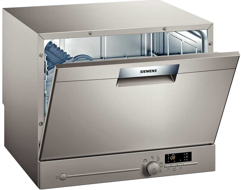 Существуют малогабаритные посудомоечные агрегаты, которые можно установить на стол. По форме они напоминают микроволновые печи. Производительность малогабаритных устройств очень мала. Они подойдут одиноким людям.