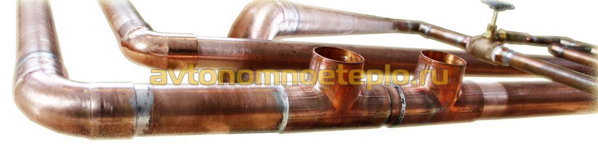 Обвязка медью не боится замерзания. Обвязка котельной медными трубами устраняет сложности связанные с замерзанием теплоносителя. Стальные, как и пропиленовые трубы, в таком случае просто разрывает. Медь более пластичная, поэтому выдерживает нагрузки при замерзании без потери целостности.