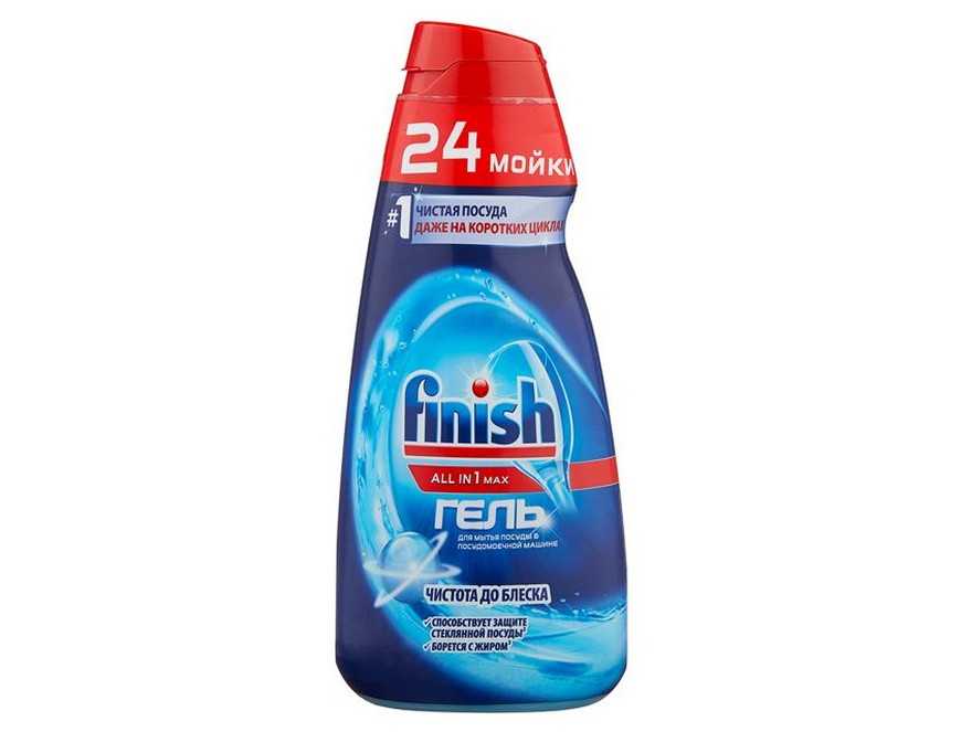 Один из популярных среди покупателей гель для посудомоечной машины обладает многокомпонентной формулой, способной закрыть все потребности владельца посудомойки. Речь идет не только об удалении загрязнений, но и о придании посуде блеска, об удалении неприятных запахов и стойких пятен от красящих продуктов. Также в составе есть компоненты, смягчающие воду. Однако если вы проживаете в регионе с водой повышенной жесткости, то требуется дополнительное использование соли, чтобы накипь не образовывалась при регулярном использовании ПММ. Гель продается в двух объемах — 600 мл и 1000 мл, может использоваться на коротких циклах и хорошо растворяется в холодной воде, что позволяет экономить на счетах за электричество.