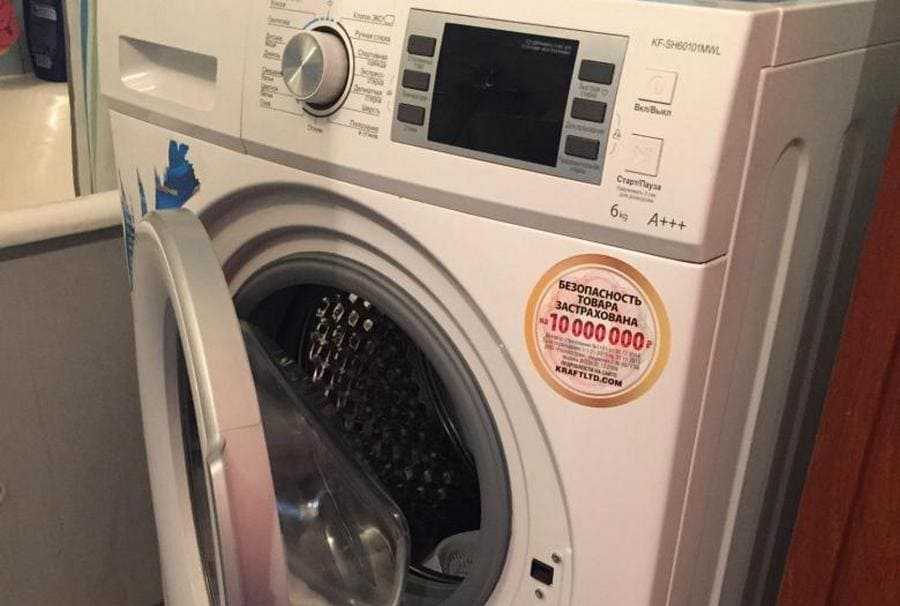 Предварительно изучили цены в Интернете, но покупку делали в реальном магазине. Выбор пал на машинку Kraft KF-SL60802MWB. Сомнения были по поводу бренда, зато цена подходила идеально при загрузке в 6 кг. Глубина машинки с учетом дверцы барабана составляет чуть больше 45 см. Режимов в ней 8, но нам этого достаточно, функционал хороший, даже автоочистка барабана и патрубков имеется.