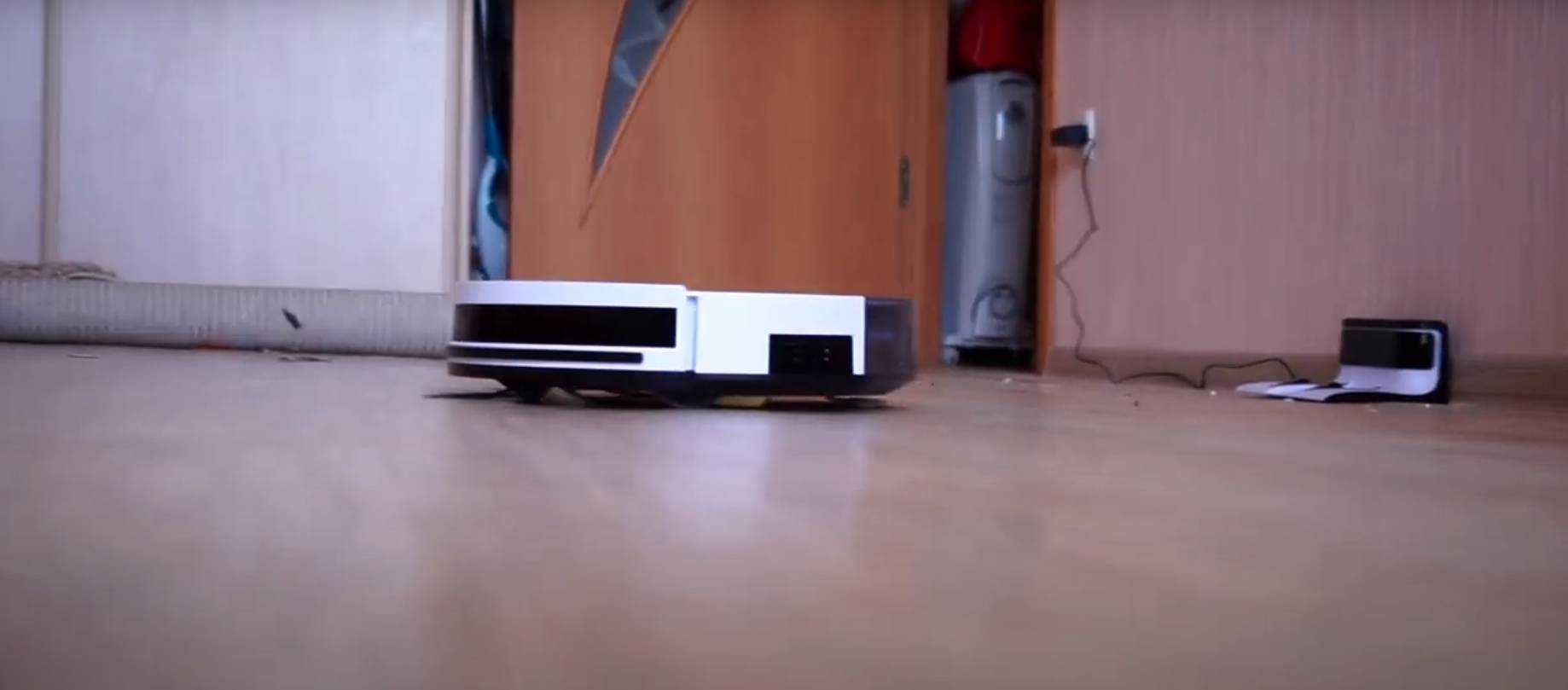 Движение пылесоса Дексп ЛФ 800 обеспечивает классическая трехколесная система. Она состоит из двух задних колес с моторчиками, прикрепленных к подпружиненным шасси, и одного переднего свободновращающегося ролика. Каждое колесо покрыто резиновой шиной с протектором. Это позволяет девайсу проходить сложные участки и не скользить по влажному полу. Хотя, как показывает практика, иногда автоматизированному аппарату все же требуется человеческая помощь.