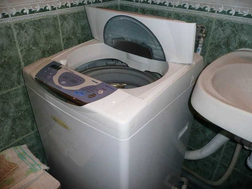 Преимуществом такого агрегата является то, что она не широкая (40 см) и не требует дополнительного места для открывания люка. Поэтому в небольших помещениях агрегат, в котором вещи вкладываются в барабан сверху, является настоящей находкой.