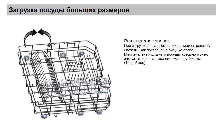 - Тарелки лучше укладывать в ячейки через одну, чередовать крупные предметы с мелкими. Так обеспечивается лучший доступ воды к посуде.