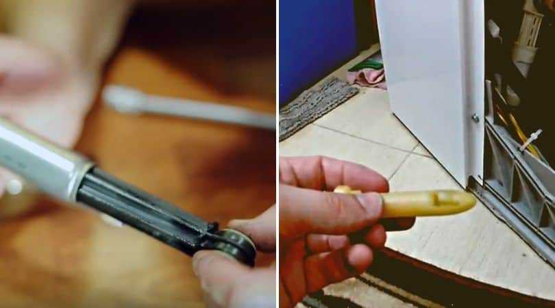 - Отрезанный кусок вставляем на место вытащенного ранее изношенного уплотнителя (края новой прокладки должны сойтись).