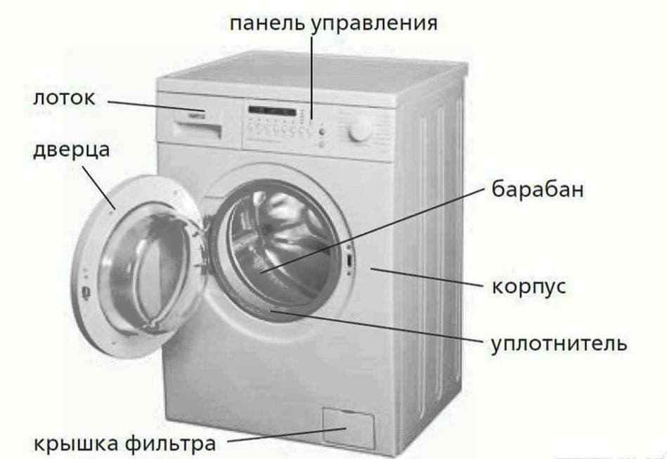 п) или элементы одежды, которые застряли в патрубке и поэтому вода не уходит из стиральной машины.