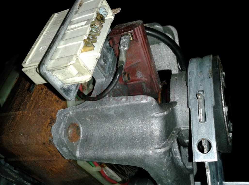 - Большинство электродвигателей содержит защиту против перегрева. Реализуется посредством примитивного термопредохранителя. Происходит перегрев – элемент перегорает. Коннектор припас два вывода. Используются схемой контроля целостности цепи. Отслеживать может центральный процессор, в простейшем случае обмотки электродвигателя просто питаются через защиту. Термопредохранитель часто крепится на корпусе двигателя. Для стиральных машин мотор изготавливается, чтобы по контуру образовывалось нечто, напоминающее магнитопровод (набор стальных пластин). Термопредохранитель располагается либо там, либо под изоляцией обмоток. Безразлично нашим целям, если нет боязни сжечь двигатель. Через защитную цепь лучше включать оборудование. Термопредохранитель стоит последовательно обмоткам.