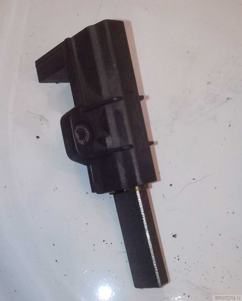 Снимаем старую щетку стиральной машины и смотрим, насколько она изношена если уголек составляет меньше 1.5 см, то щетка изношена и требует замены