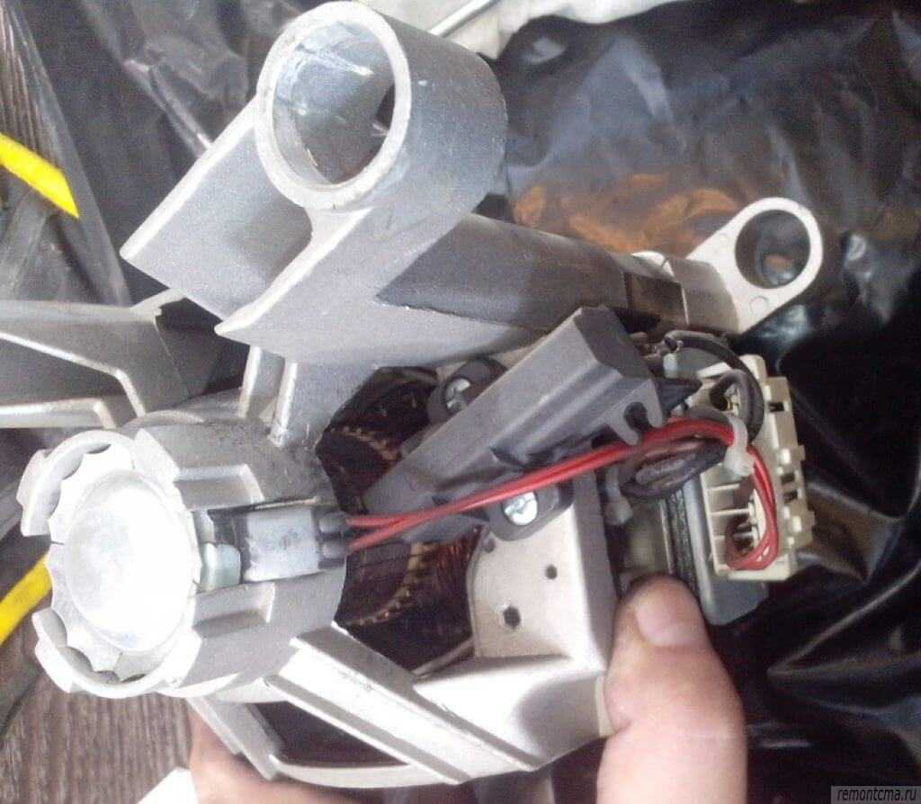 После того, как двигатель вытащен из стиралки, задачу можно решить двумя методами: с разборкой мотора, без разборки мотора.