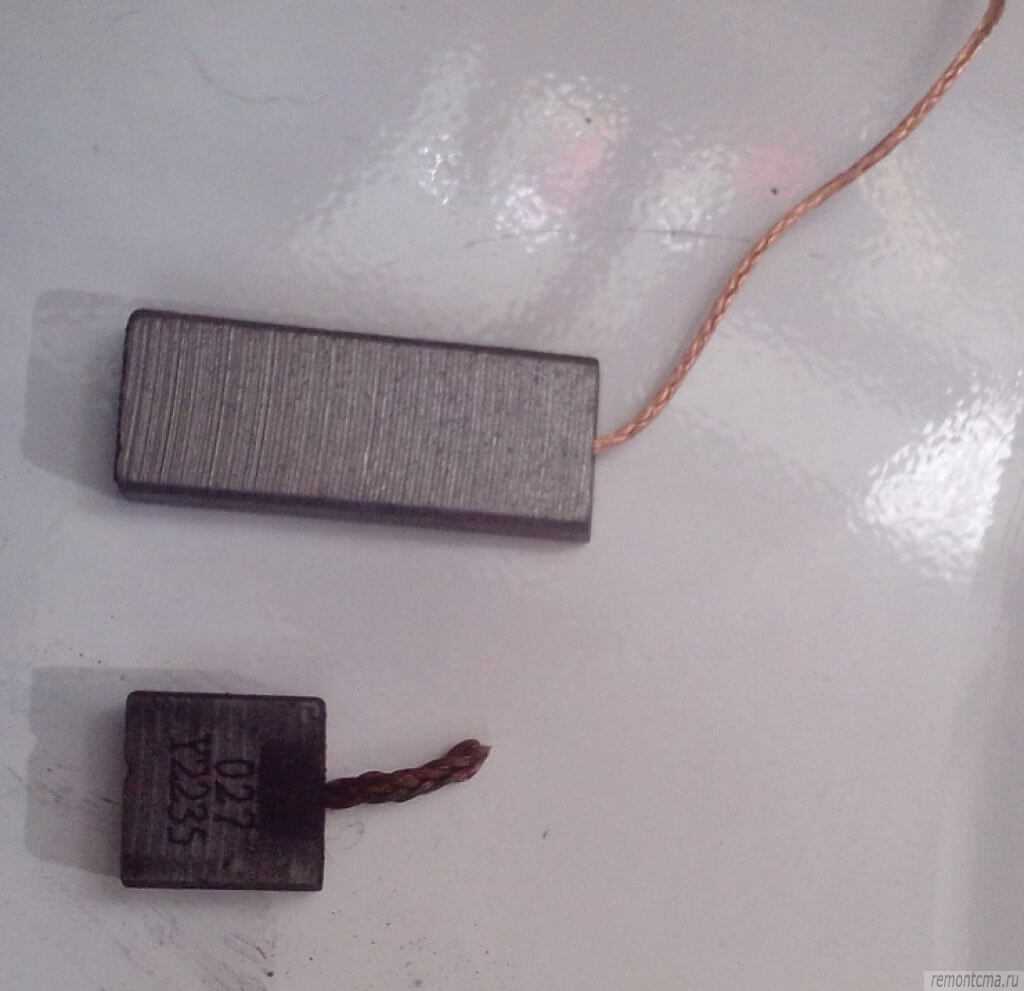 - Исчерпавшие свой рабочий запас щетки имеют длину стержня не более 1,5 см (если длина щеток больше, то проблема не в них).