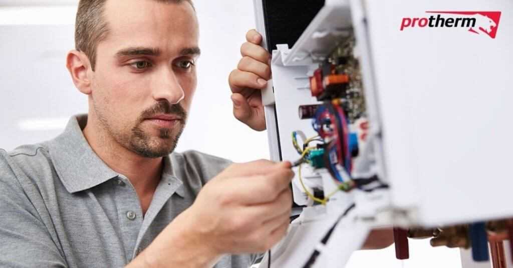 2. Начинать ремонт нужно с проверки надежности всех контактов. Протерм Гепард – котлы со встроенным насосом: по теплообменнику, трубам постоянно циркулирует жидкая среда. Если добавить систематические изменения ее температуры, давления, некорректную работу воздухоотводчиков системы, станет понятно – незаметные глазу вибрации котла постоянно присутствуют.