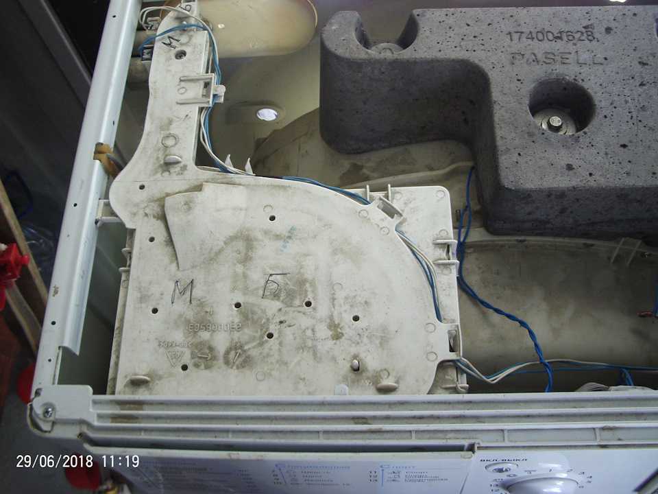 Пайка компонентов платы может нарушаться в результате сильных вибраций машины. Поэтому нужно следить за правильной и стабильной установкой стиралки.