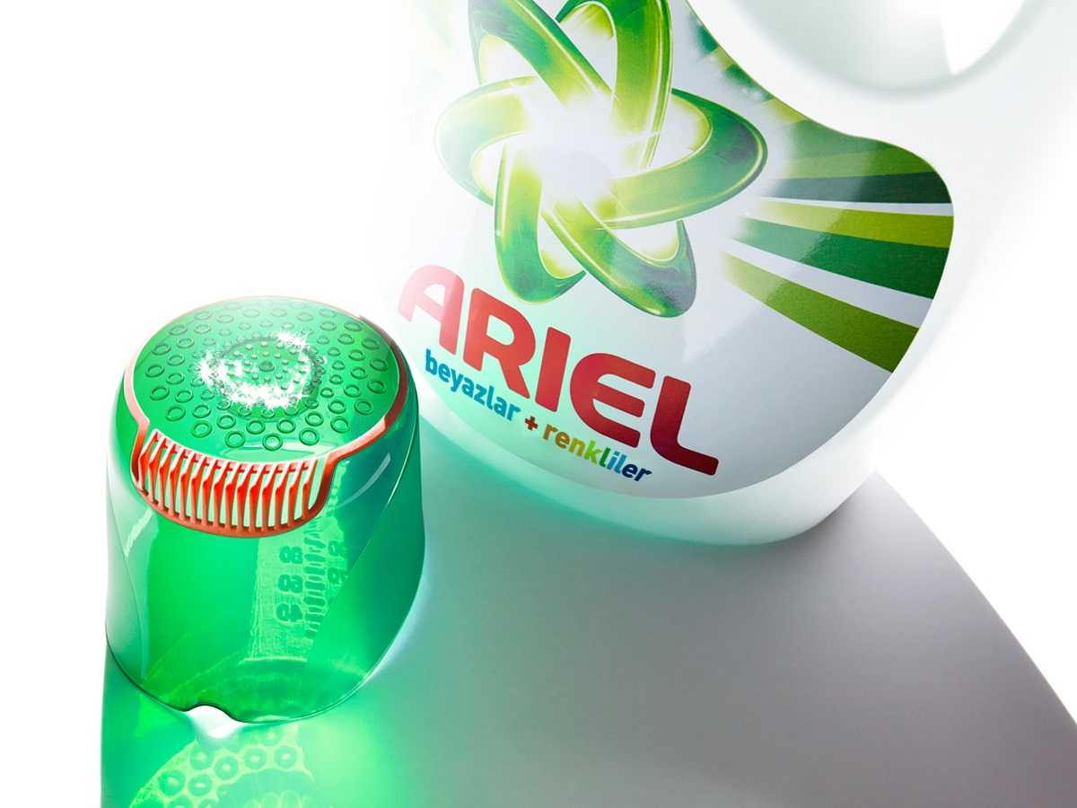 Гель Ариэль продается в упаковках, содержащих специальный ребристый колпачок. Он используется не только как мерник, но и для предварительной обработки пятен. Последняя считается необходимой при стирке любым моющим средством, однако на практике о ней часто забывают, что снижает эффективность удаления загрязнений. Колпачок же создан скорее как напоминание.