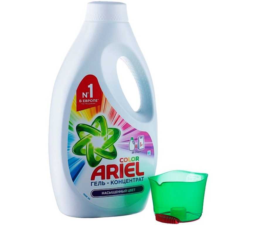 - Гель. Он содержит намного больше активных веществ и быстрее спасает испачканные материалы. Может одновременно выступать и как кондиционер.