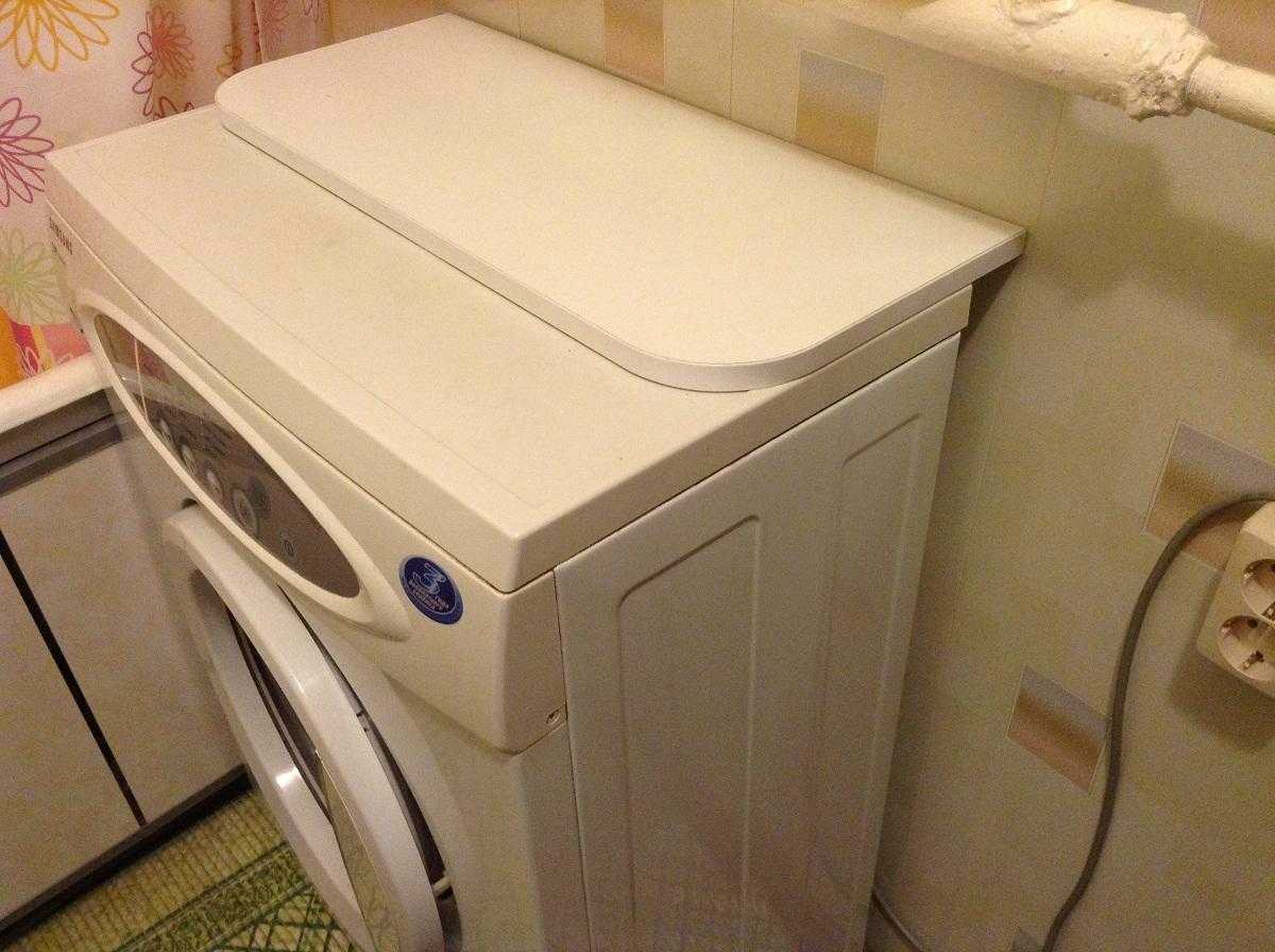 На скользком кафеле стиральная машинка может сдвигаться с места при работе на высоких оборотах. Выходом станет приклеивание двухстороннего скотча на ножки.