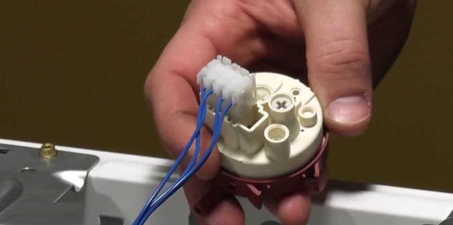 - Начата стирка, но вода не подается. Вызвано это отказом реле, отвечающего за замер количества подаваемой жидкости. Оно может отказать из-за образовавшегося засора, каких-либо повреждений, полученных в процессе транспортировки. Чтобы устранить проблему, придется прочистить измерительную трубку прессостата, или заменить ее на новую.