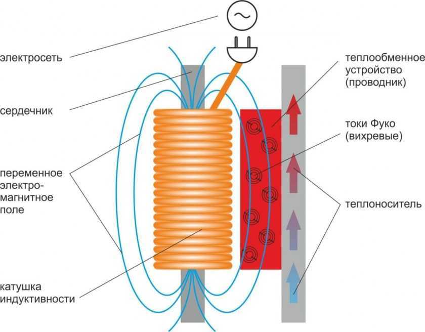 Принцип действия основан на создании вихревых индукционных токов Фуко. Как правило, при работе бытовых приборов подобные токи вызывают сбои, но в этом случае они применяются для нагрева шихты до требуемой температуры. Практически вся электроника во время работы начинает нагреваться. Этот негативный фактор применения электричества используется на полную мощность.