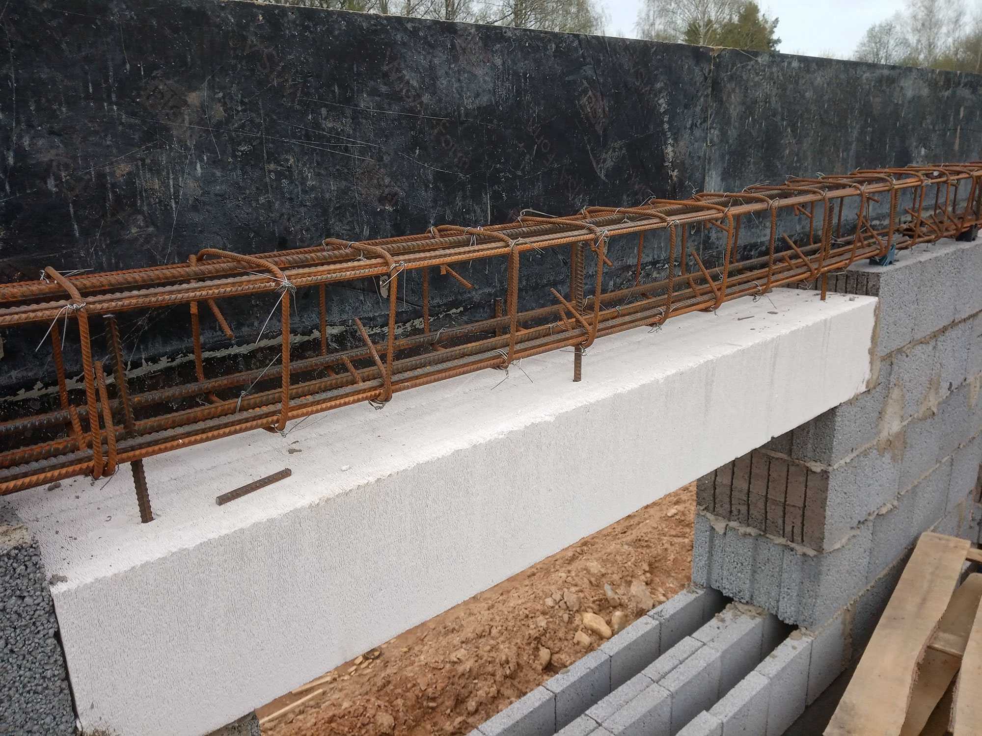 Дополнительное усиление над проемом выполнено арматурой диаметром 16 мм, 3 сверху каркаса и 3 снизу. На стену в каждую сторону заходит по 50 см.