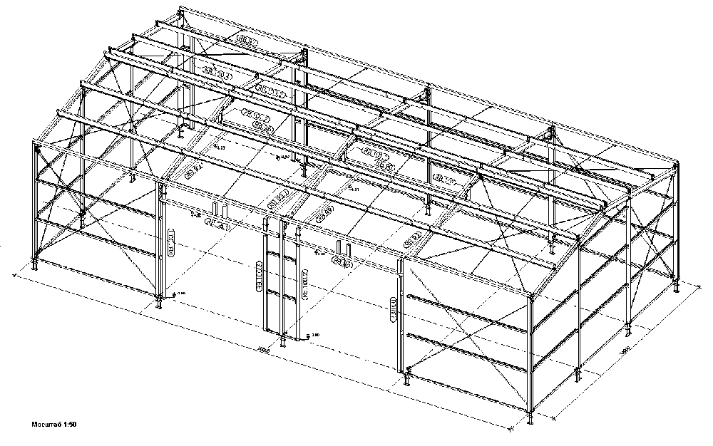 Он представляет собой схему каркаса с уже заданными параметрами материалов, вероятными типами связей, опор, которые будут использоваться в строительстве.