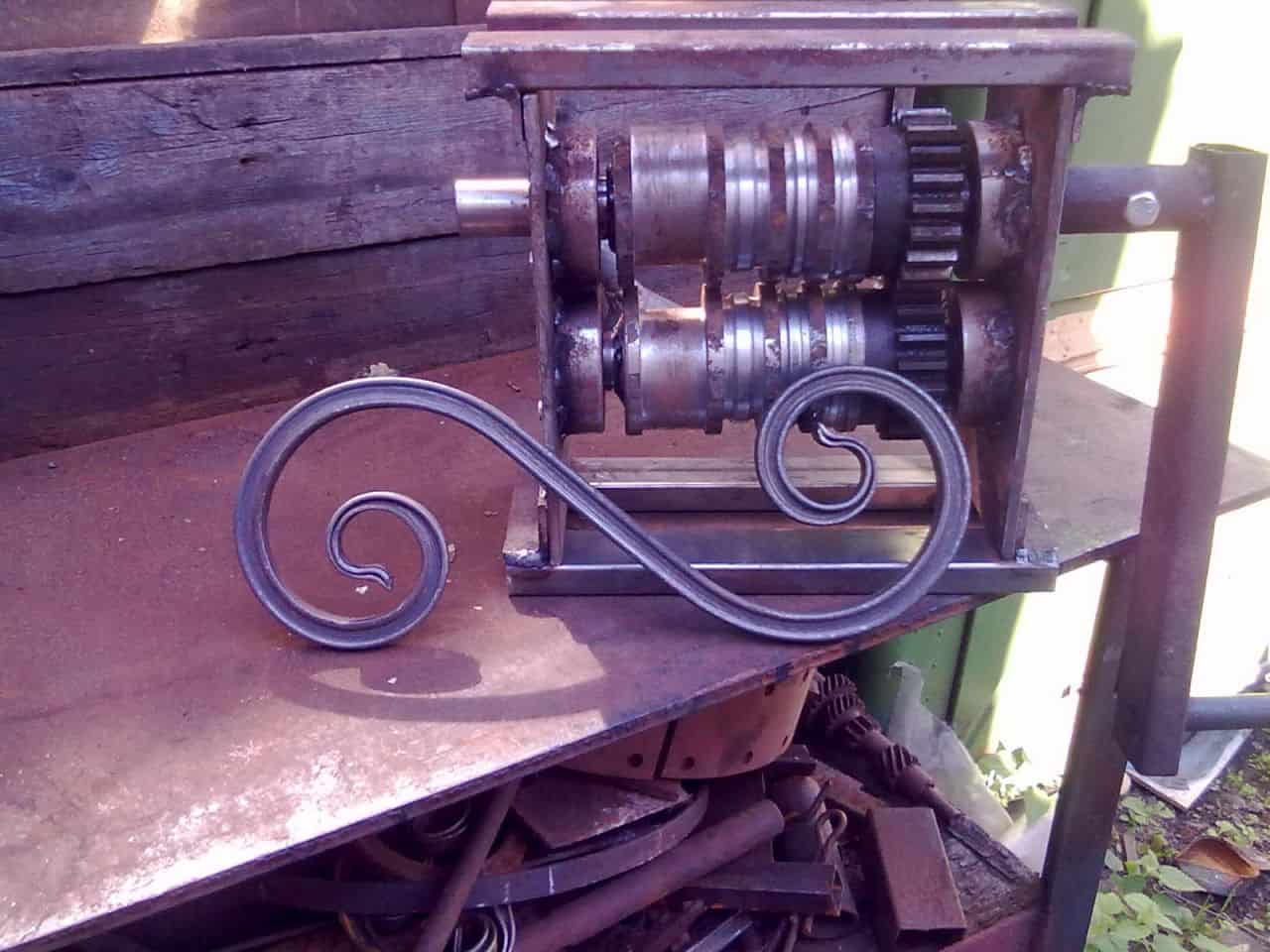 Станок представляет собой модернизированный гибочный рычаг для труб. Вместо цилиндрической насадки используется копир. Техника ковки основана на обвитии заготовки вокруг шаблона, приваренного к массивному основанию.