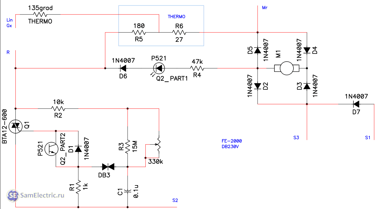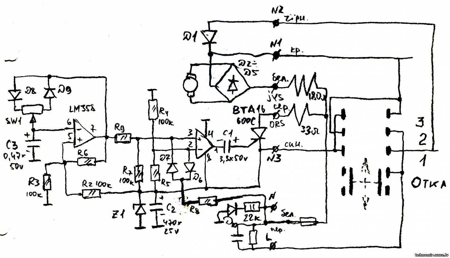 Фен Интерскол ФЭ-2000. Плата DB3011. Схема соединений
