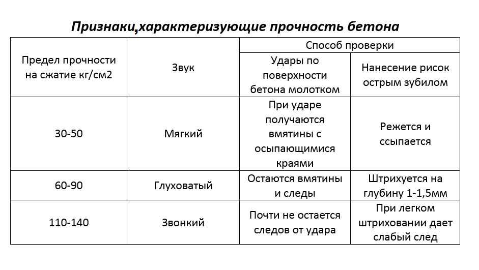 Прочность бетона фундамента. Монтаж станка может быть допущен при достижении бетоном прочности на сжатие не ниже 50% проектной (примерно соответствует семидневному бетону). К моменту пуска станка прочность бетона должна быть не ниже 70% проектной (примерно соответствует 15 дневному бетону). Срок полного твердения бетона – 28 дней. Качество бетона контролируют по прочности контрольных кубиков 200х200х200 мм. Прочность бетона в готовом фундаменте может быть грубо оценена по звуку и ударам.