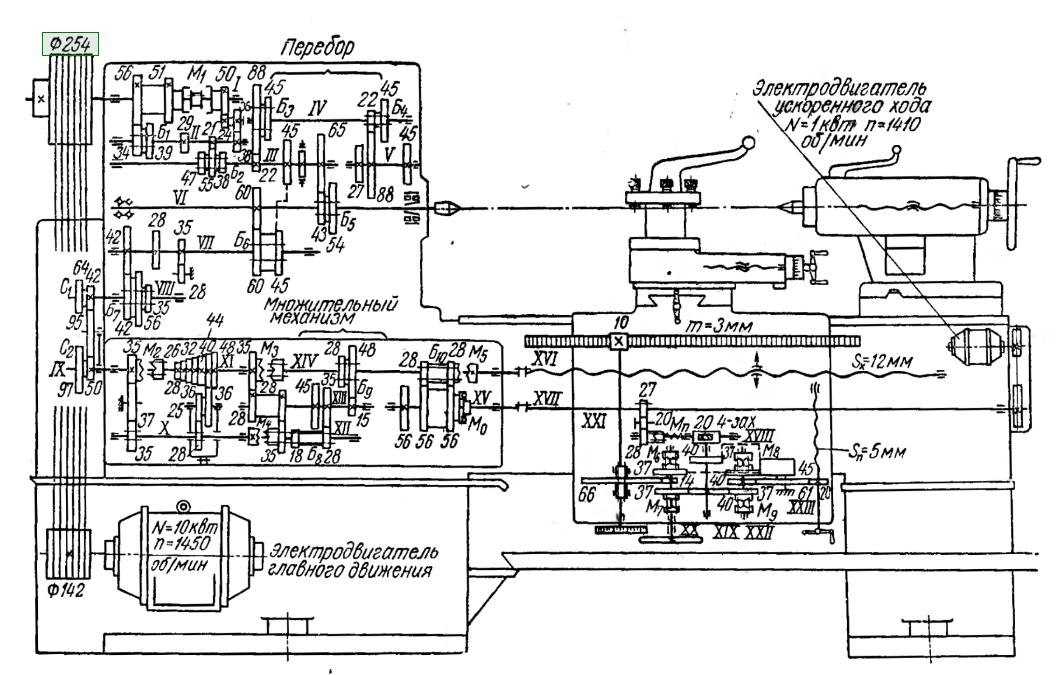 Кинематическая схема токарно-винторезного станка 1к62