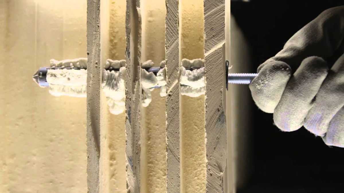 Не так давно появился новый вид анкерных систем — клеевой, или химический. Ведь крепить что-то к стене из пустотелого кирпича очень проблематично. Для этой цели используют данный вид крепежа. Вместо гильзы в нем применяют ампулу со специальным полиэфирным клеем, в который вкручивается шпилька. Через короткое время клей застывает, и надежное крепление готово.