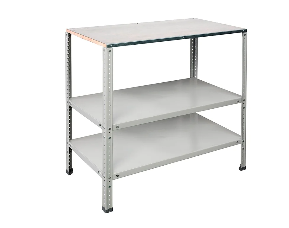 Верстак ПРАКТИК Garage №112 — легкий и удобный верстак подойдет для любого гаража, даже небольшой площади. Эффективность использования повышается за счет возможности регулировки высоты полок с шагом 50 мм. Верхняя часть выполнена из МДФ 16 мм. Оцинкованная накладка из стального листа 1.2 мм повышает предельную нагрузку на верстак до 300 кг. Опоры — стойки из профиля 40х40 толщиной 1.5 мм. Имеются две полки, каждая с предельной нагрузкой до 100 кг.
