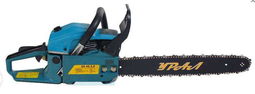 Помимо классической модели с мощностью 5 л.с. выпускалась интересная бензопила Урал БП-45-3.0, которая была отличным помощником в домашнем хозяйстве. Вес устройства был немного уменьшен, имеется неплохая комплектация в виде дополнительных храповика и масло привода. Мощность двигателя уменьшили до 3 л.с. или 2,3 кВт.