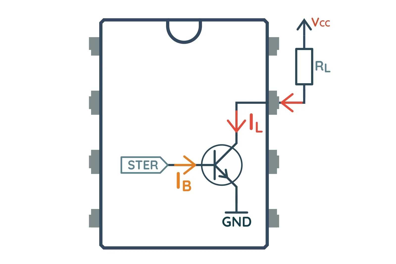 Преимущество этого типа выхода состоит в том, что на нагрузку может подаваться напряжение, отличное от напряжения остальной схемы. Это может быть, например, реле с катушкой на напряжение 12 В, тогда как остальная электроника получает 5 В. Переключение этого реле будет происходить в низком состоянии после насыщения выходного транзистора. В свою очередь, чтобы выключить его, достаточно прервать протекание тока (засорение транзистора).