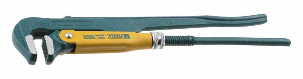 Эта модель по абсолютному большинству параметров — идеальный газовый ключ, сочетающий в себе всё необходимое для качественной работы и полное удобство в использовании. Инструмент полностью оправдывает свою высокую цену и профессионал никогда не пожалеет о его приобретении. Особые технологии производства и отличный материал позволили сделать зубчатые губки способными не только к надёжному хвату, но и к работе в небольших промежутках — далеко не каждая модель трубного ключа предназначена для такой тонкой работы. Эта особенность нисколько не умаляет других преимуществ модели — ширина захвата в 45 мм, устойчивость к повреждениям и коррозии, удобная ручка.