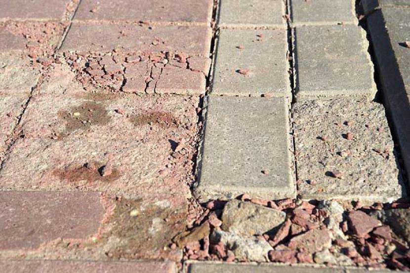 Плитку может поломать весеннее пучение грунта, зимняя оттепель с последующим похолоданием, а также другие проблемы. Она начнет откалываться по краям, может деформироваться и разрушаться под действием солнца.