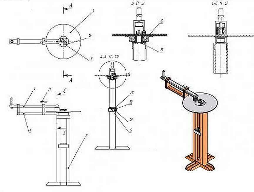 Некоторые предпочитают создавать универсальный станок, позволяющий впоследствии работать в любом месте, располагая его и на полу, и на диване. Чертеж такого станка легко найти в интернете среди предложений мастеров, являющихся активными участниками специализированных форумов.